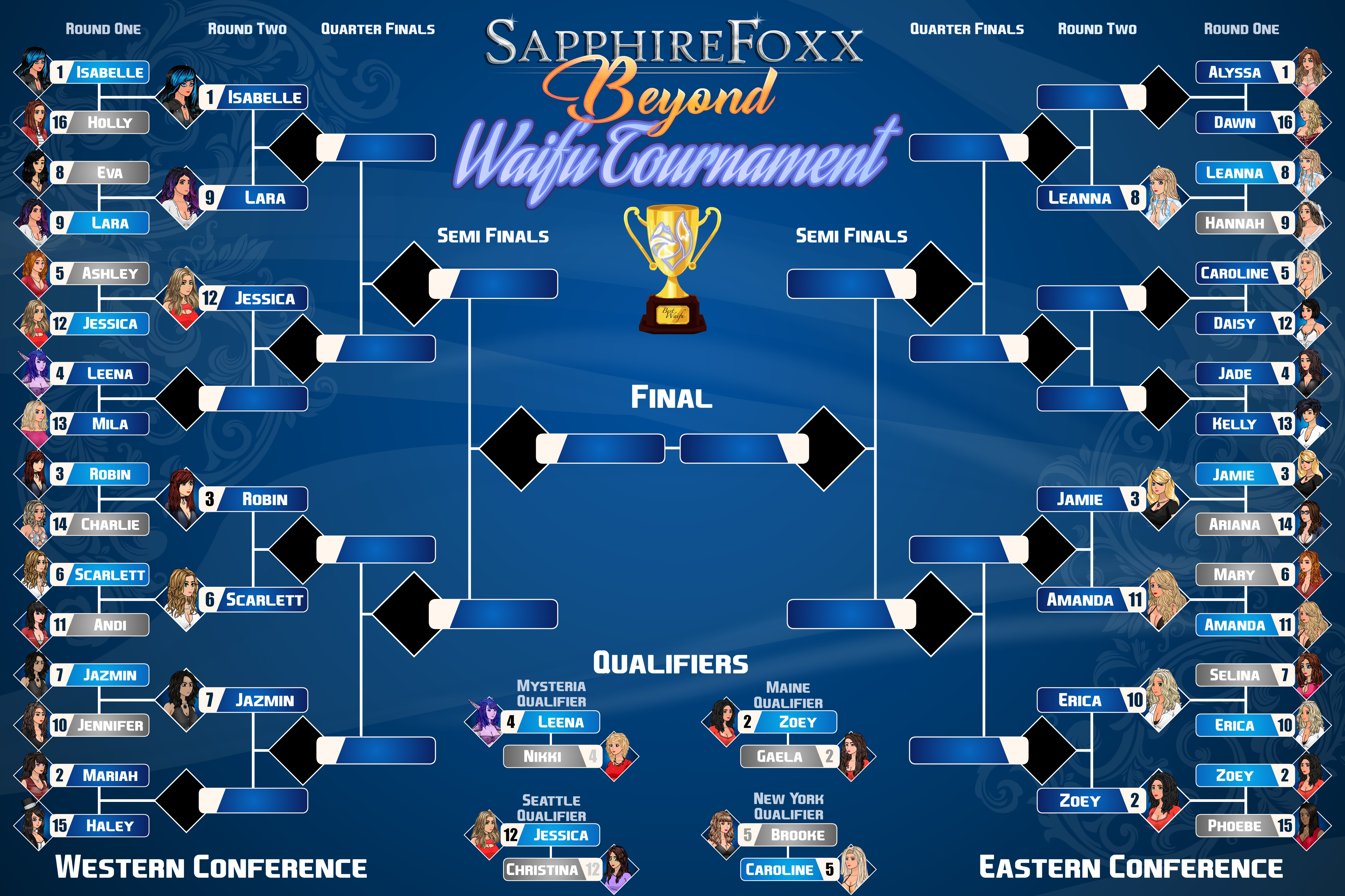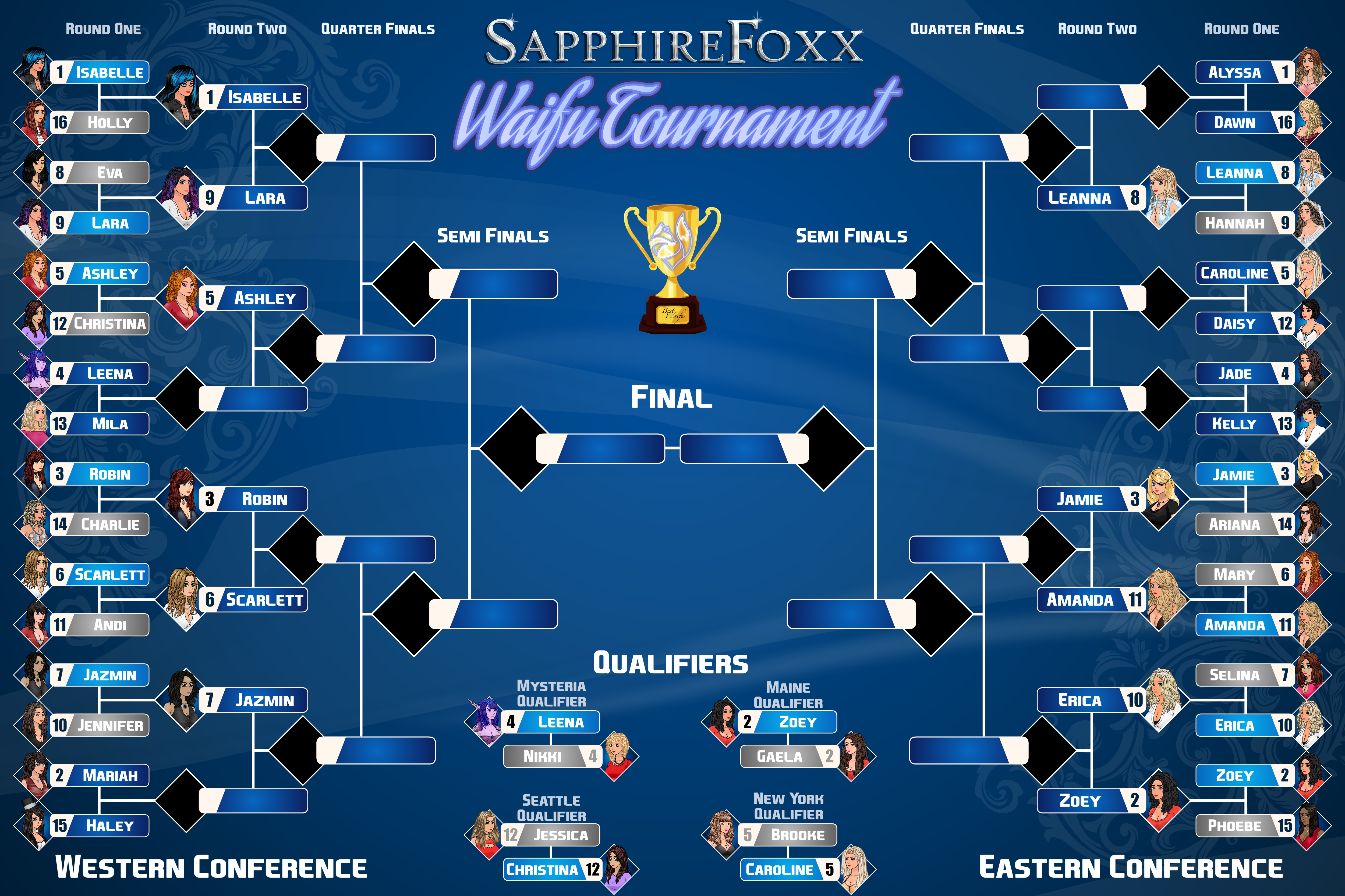 The east may be filled with blondes, but most of them are not going to get much further than the next round. Based off the seeding, the most likely matchup in the semifinals is Alyssa vs. Zoey. To be honest, the fact that a large chunk of girls in the eastern second round are blondes is just a coincidence, which will become more clear when those same blondes start to lose.